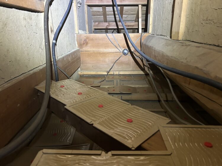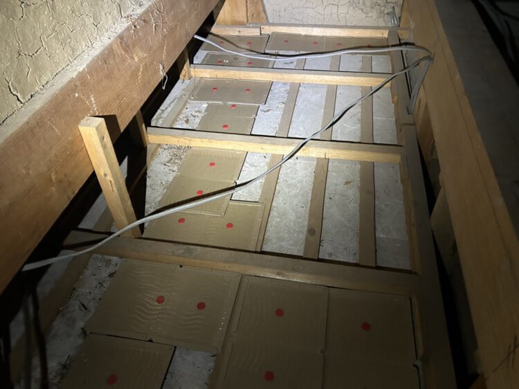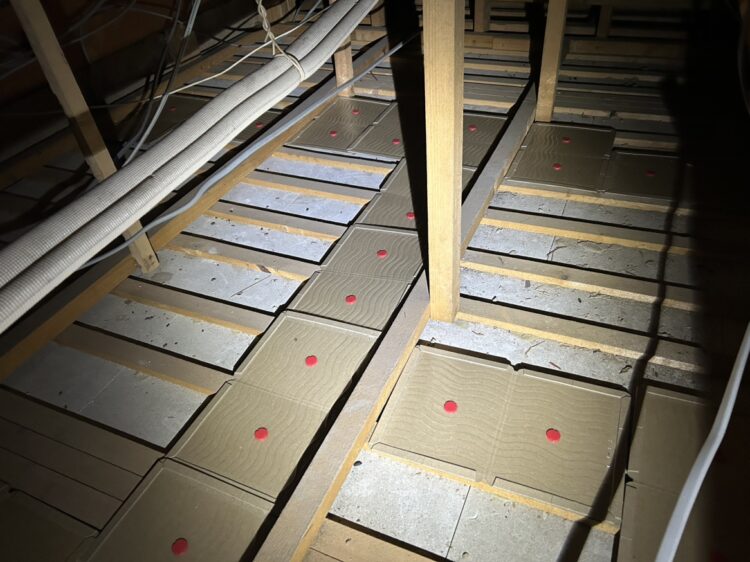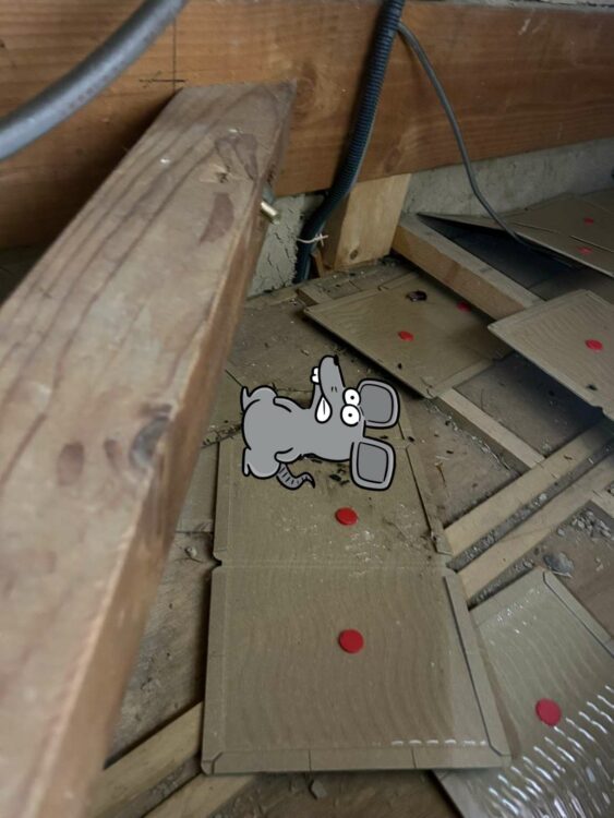 ➀捕獲作業(トラップ設置)…天井裏に200枚設置しました